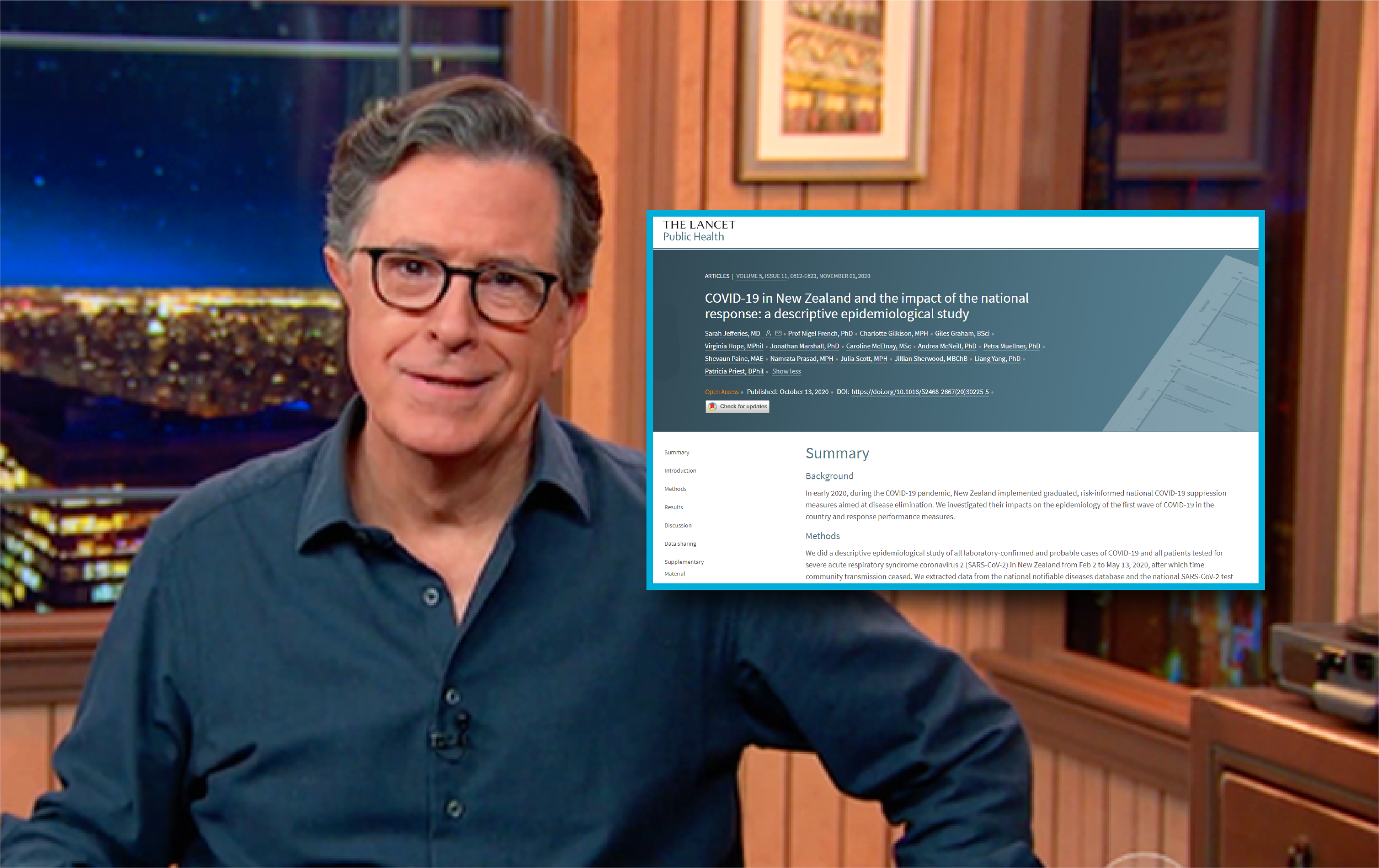 Watch Stephen Colbert discuss New Zealand’s COVID-19 response and guess what – refer to a paper we co-authored in the Lancet Public Health.