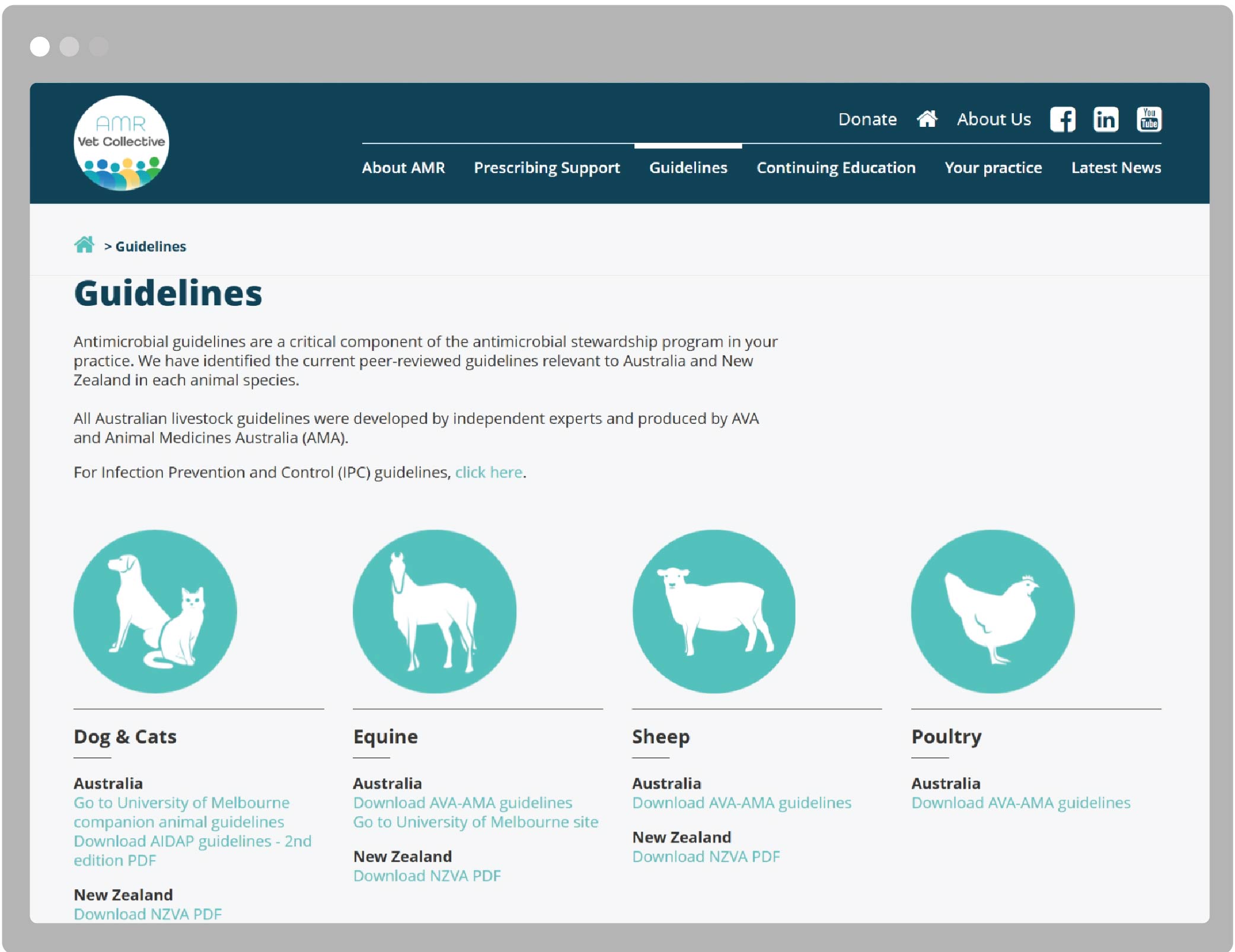 The AMR Vet Collective website synthesises information and resources about AMR for veterinarians in Australia and New Zealand. It pulls together information in a way that no matter what your role or practise, you can easily find the resources that are relevant to you.