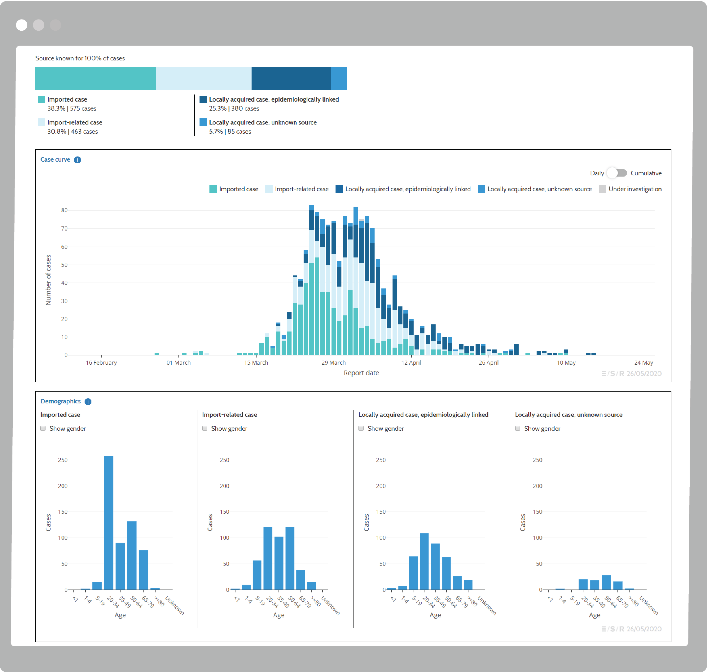 The information collated through this process for COVID-19 had to be quickly turned into easy to access intelligence for health professionals to support their decision-making. At the same time unprecedented public interest required case information to be communicated to the public in a clear and easy to understand way, while safeguarding the privacy of those affected.