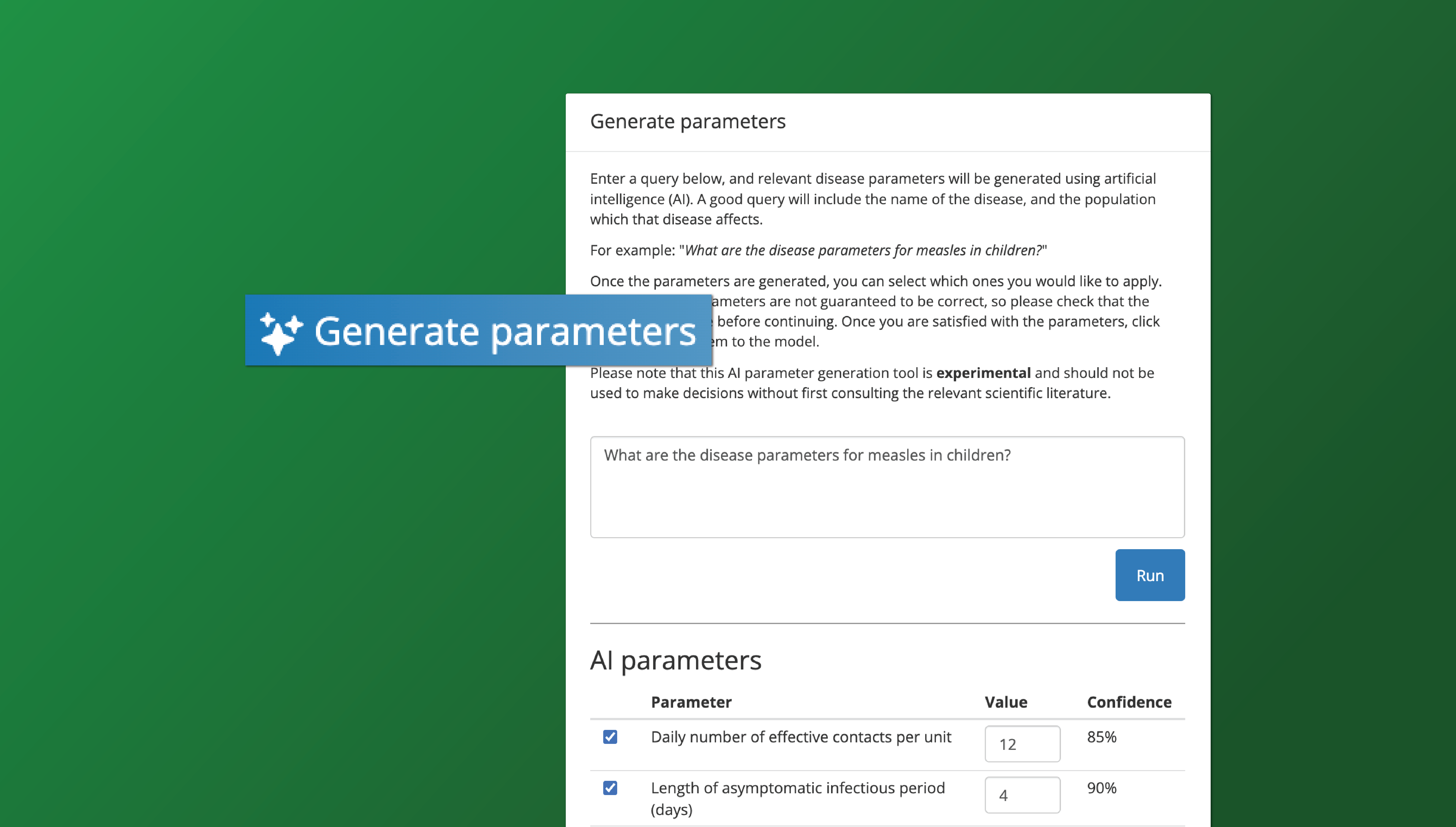 Integration of artificial intelligence into Epidemix enables the app to generate disease parameters specific to the transmission dynamics of a disease of interest. Users can simply ask the app to research values for parameters of a specific disease, and the app will propose values which, following review, can be used to populate a model of choice and explore their effect on model outputs such as the number of infected and symptomatic individuals.