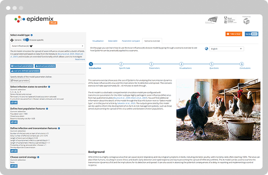 To ensure disease models on the dashboard were easily digestible and accurately communicated complex scientific data we collaborated closely with researchers at the Royal Veterinary College and the City University of Hong Kong. At each step, explanations of the models and parameters included in Epidemix are just a mouse click away for the user. Scenario exercises for disease models are available in multiple languages, removing language barriers and allowing the app to be used by a global audience.