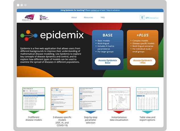 Disease models are often complex and challenging to communicate. Epidemix makes disease models accessible, removing the barrier of dealing with mathematical equations and programming language to empower students, teachers, researchers and policy makers to better understand disease spread and the impact of different interventions.