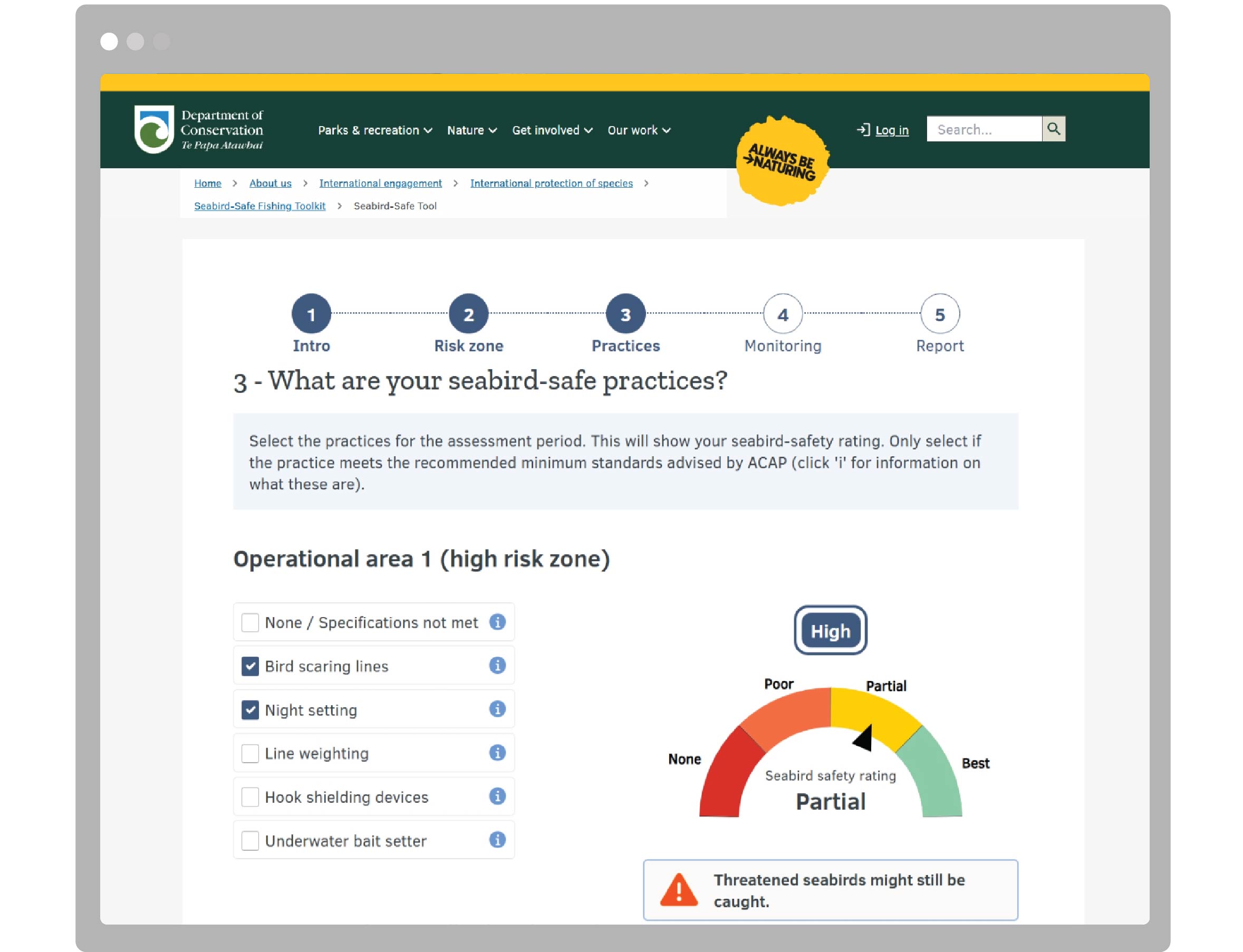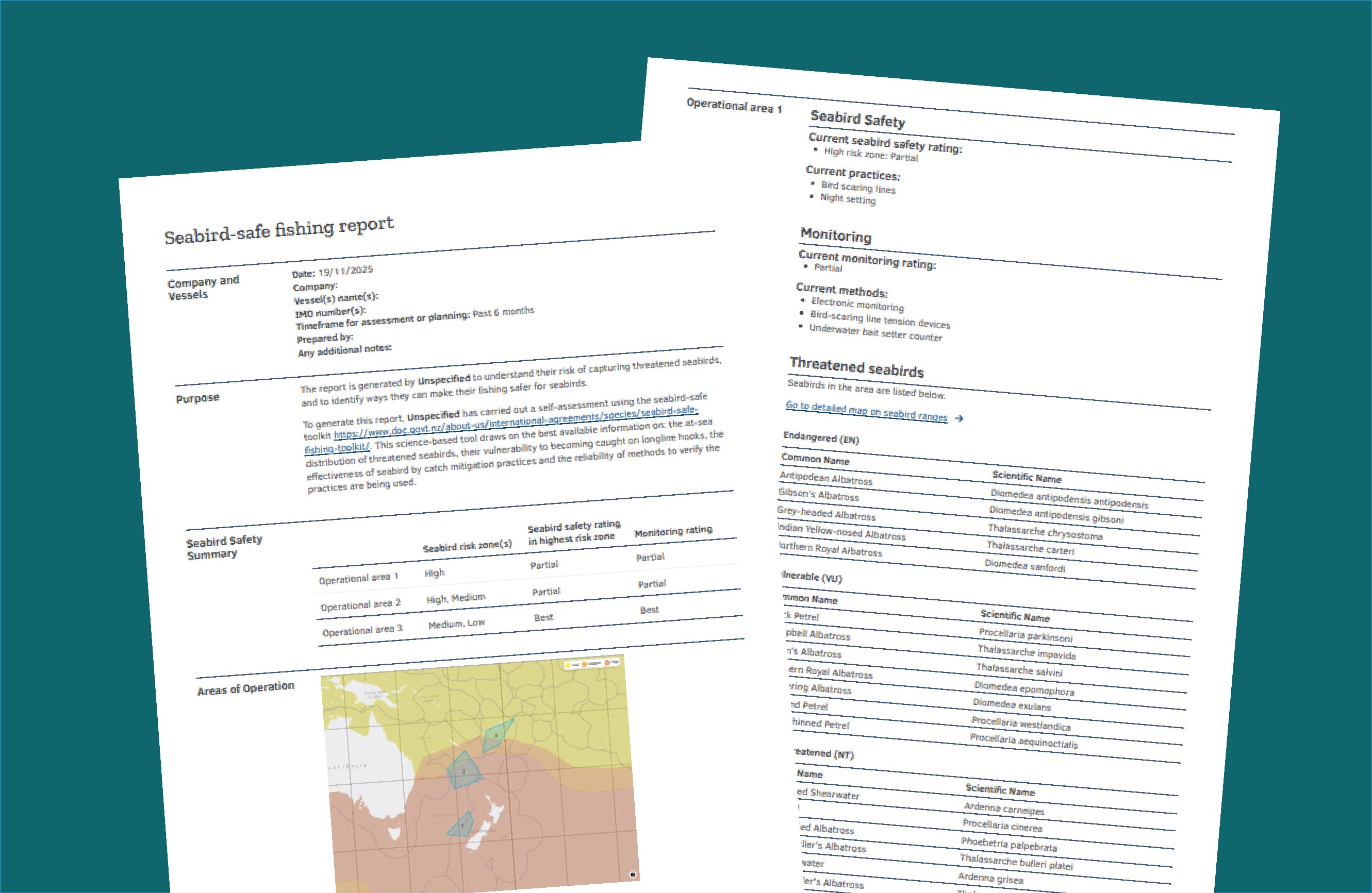 The Seabirds Dashboard supports self-assessment against recommended practices and verification requirements implemented by relevant authorities. The promotion of seabird-safe fishing practices reduces the risk to wildlife and supports conservation efforts.