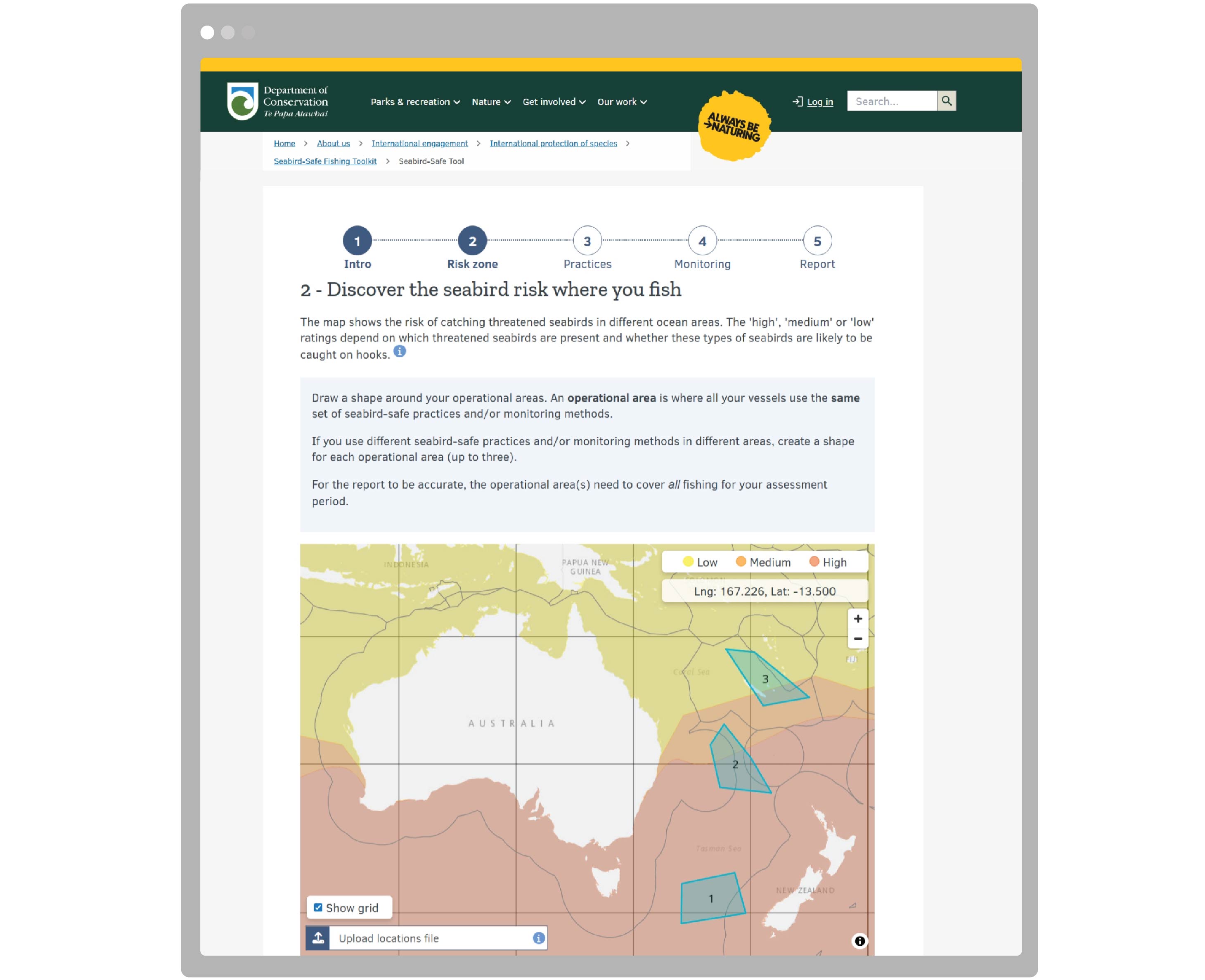 While the tool is hosted and maintained by Epi, we integrated the user interface into the Department of Conservation’s website as an iFrame, rather than making it accessible through a separate weblink. Presenting the dashboard alongside the Department’s existing tools and resources was important to ensure stakeholder can access the tool as part of diverse set of resources presented alongside each other.